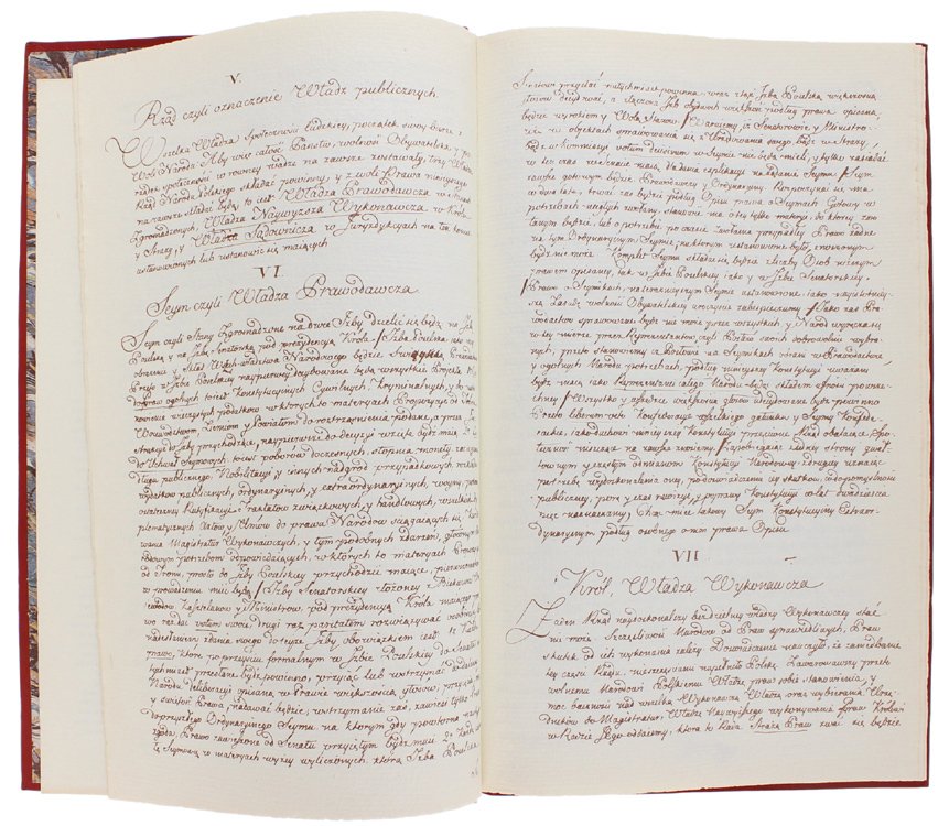 (Codice ST/0817) Folio (41x25 cm) 65(4) pages. Facsimile of the Polish constitutional text (3rd May 1791). Limited edition, copy n. 31/1000. Ivory rag paper, beards, marbled endpapers. Joined introduction in polish & english. Original hardcover, slipcase. Fine. ~~~ SPEDIZIONE IN ITALIA SEMPRE TRACCIATA