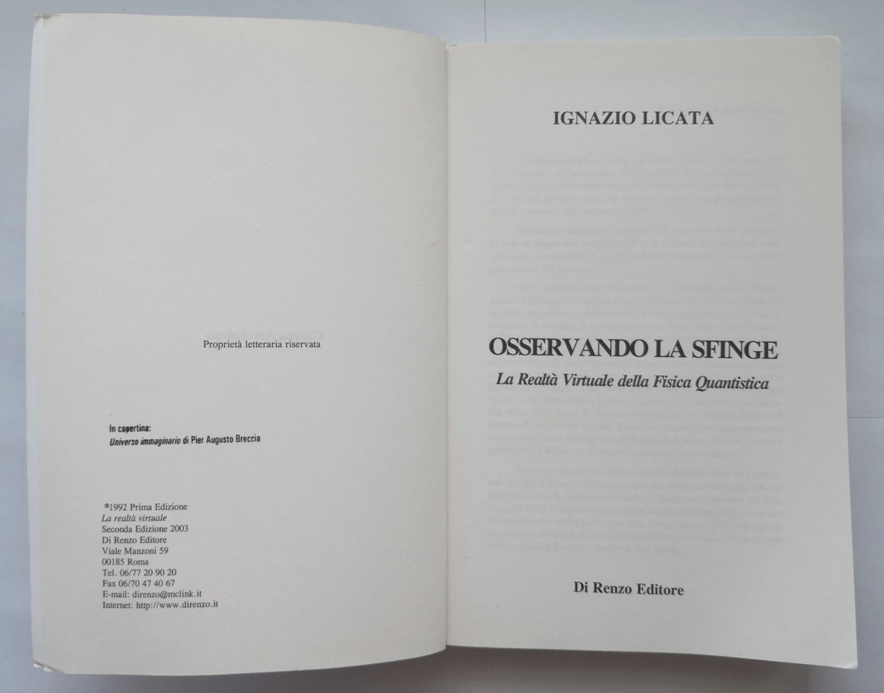 OSSERVANDO LA SFINGE di Ignazio Licata 2003 Di Renzo Libro fisica quantistica