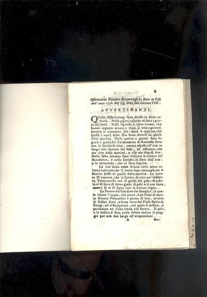 OSSERVAZIONI BOTANICHE METEOROLOGICHE FATTE IN PISA NELL'ANNO 1778.