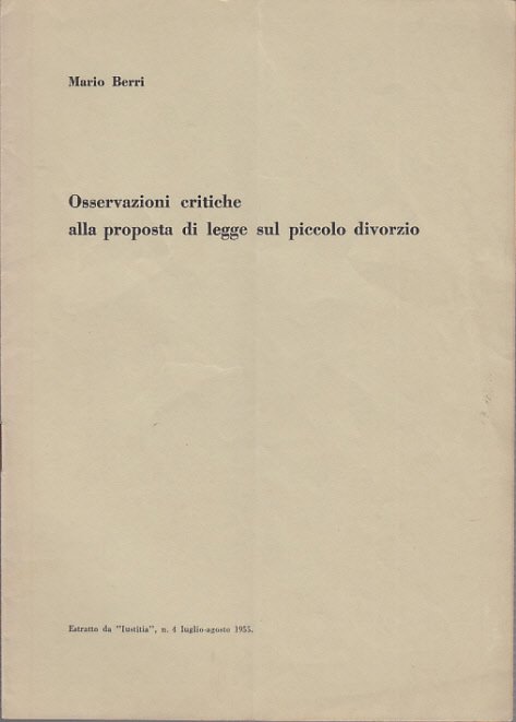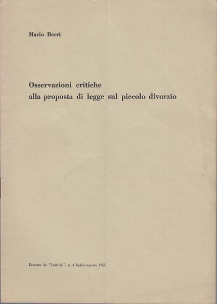 In-8 (Cm 24 x 17,2), pp. 13, brossura editoriale. Estratto da Iustitia, 1955. Pieghetta centrale verticale, lieve brunitura e segnetti a penna ai margini.