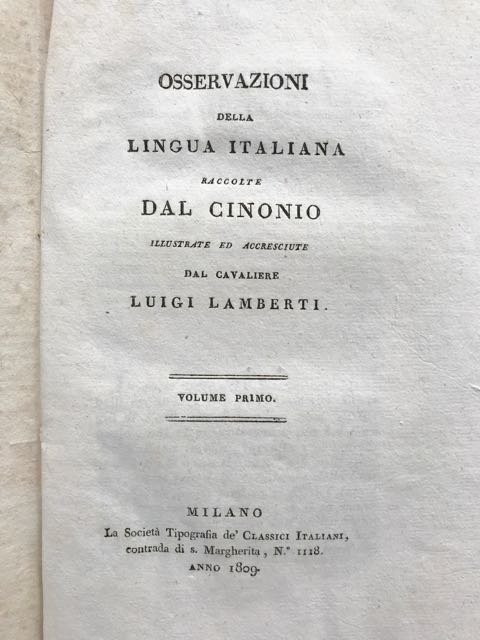 Osservazioni della lingua italiana raccolte dal Cinonio illustrate ed accresciute dal cavaliere Luigi Lamberti.