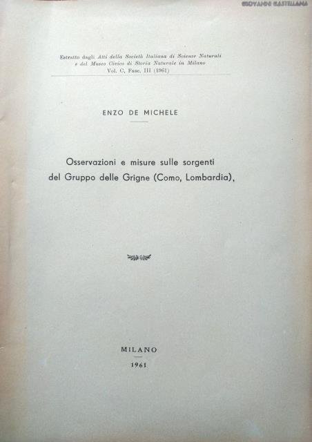 Osservazioni e misure sulle sorgenti del Gruppo delle Grigne (Como, Lombardia).