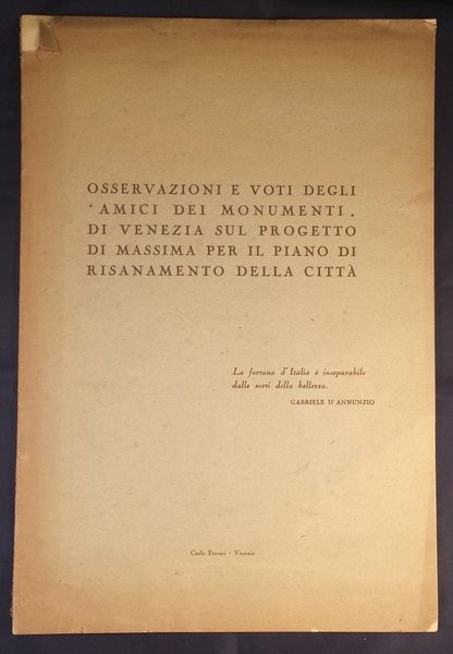 Osservazioni e voti degli amici dei monumenti di Venezia sul progetto di massima per il piano di risanamento della città.