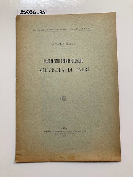 Estratto di geomorfologia co all'interno illustrazioni in B/N - DETTAGLIO DELLE CONDIZIONI : Coperta e pagine ingiallite con tracce di umidità e fioriture - (1.VIII.5).