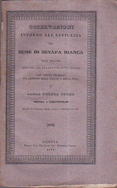 Osservazioni intorno all'efficacia del seme di senapa bianca nelle malattie nervose, del fegato e di altri organi con vedute generali sul governo della salute e della vita recate in italiano dalla quarta inglese