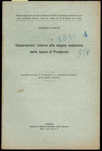 Osservazioni intorno alla doppia redazione delle opere di Prudenzio