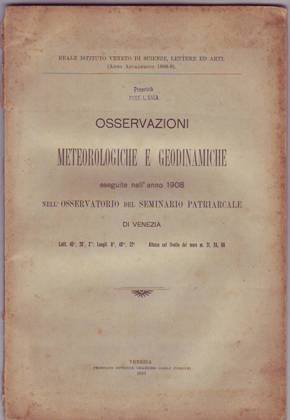 OSSERVAZIONI METEOROLOGICHE E GEODINAMICHE eseguite nell'anno 1908 nell'Osservatorio del Seminario Patriarcale di Venezia