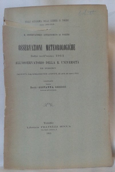 OSSERVAZIONI METEOROLOGICHE fatte nell'anno 1912 all'osservatorio della R. Universit di Torino.