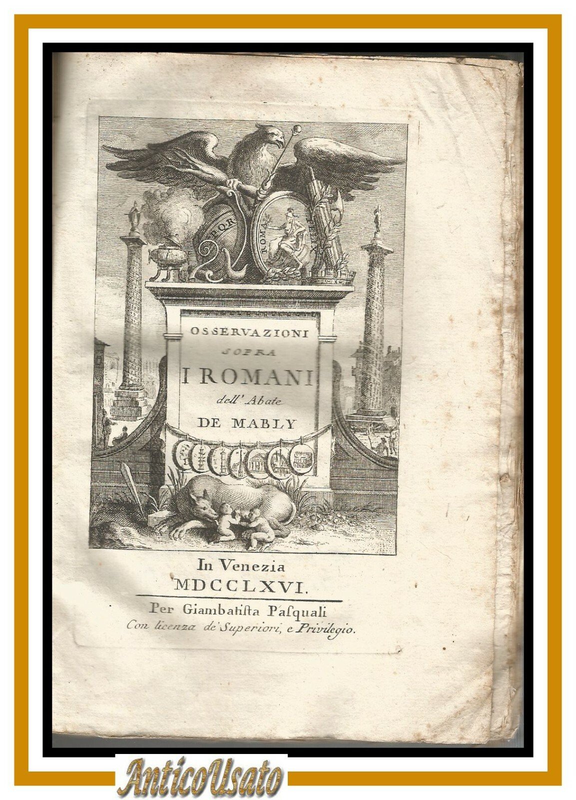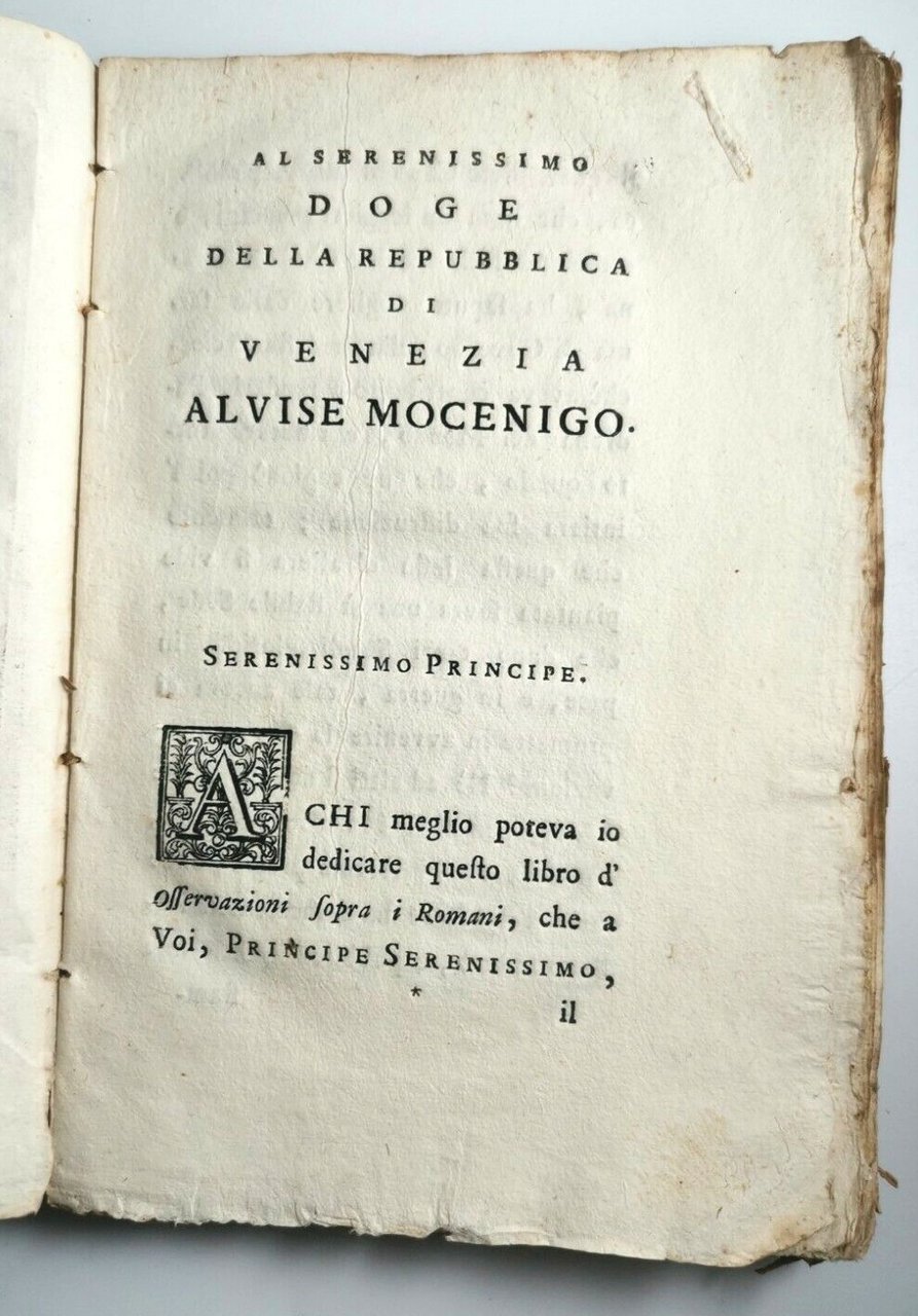 OSSERVAZIONI SOPRA I ROMANI volume I dell'abate De Mably 1766 libro antico di