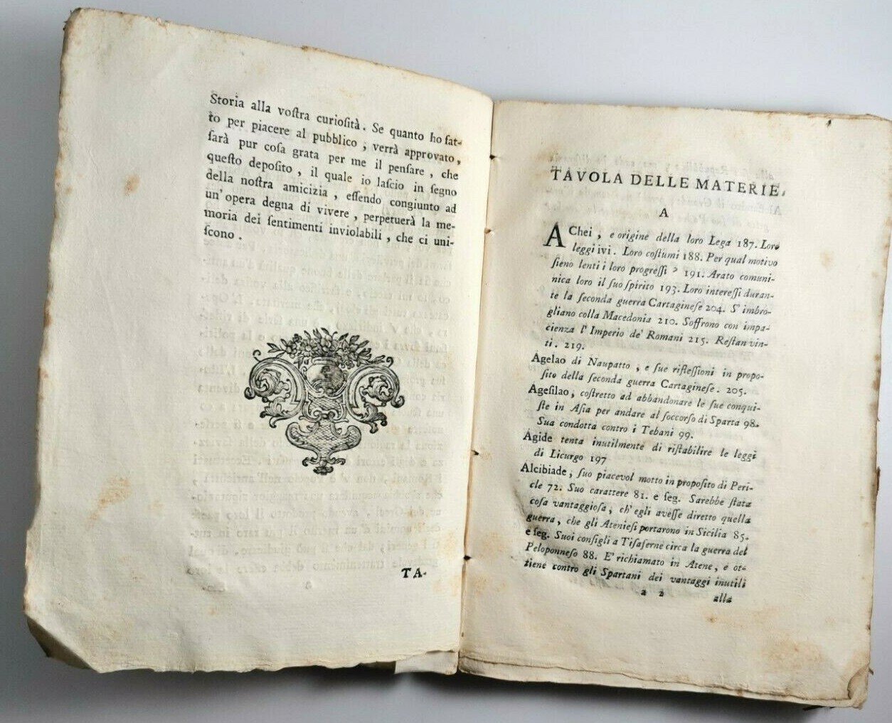 Questa copia sembra possedere XVI pagine non numerate in più in confronto con gli altri esemplari trovati in rete che, a mio avviso, appartengono invece all'opera osservazione sopra i greci dello stesso autore e coeva.