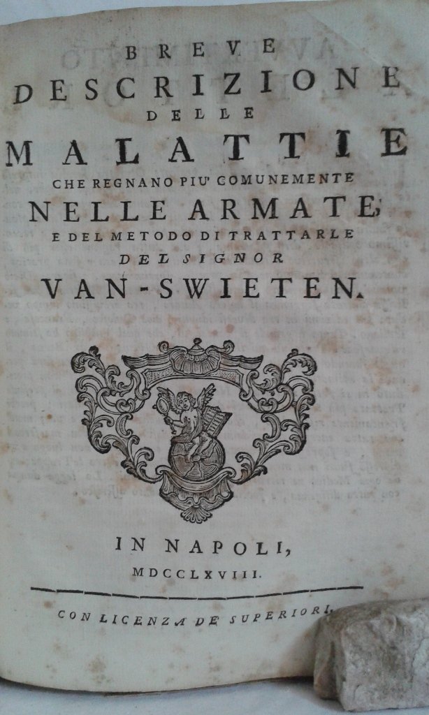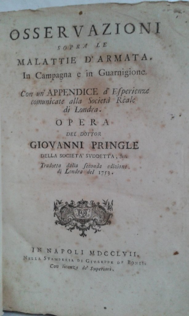 OSSERVAZIONI SOPRA LE MALATTIE DI ARMATA In Campagna e in Guarnigione Con un' Appendice d'Esperienze comunicate alla Societ Reale di Londra. Tradotta dalla Seconda edizione di Londra del 1753. Unito con BREVE DESCRIZIONE DELLE MALATTIE che regnano pi comunemente nelle Armate, e del modo di trattarle del Signor Van Svieten.