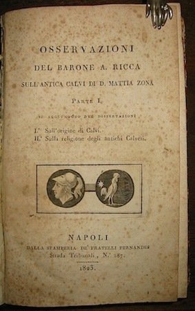 Osservazioni sull’antica Calvi di D. Mattia Zona. Parte I. Si aggiungono altre due dissertazioni: Ia. Sull’origine di Calvi, 2a. Sulla religione degli antichi Calvesi