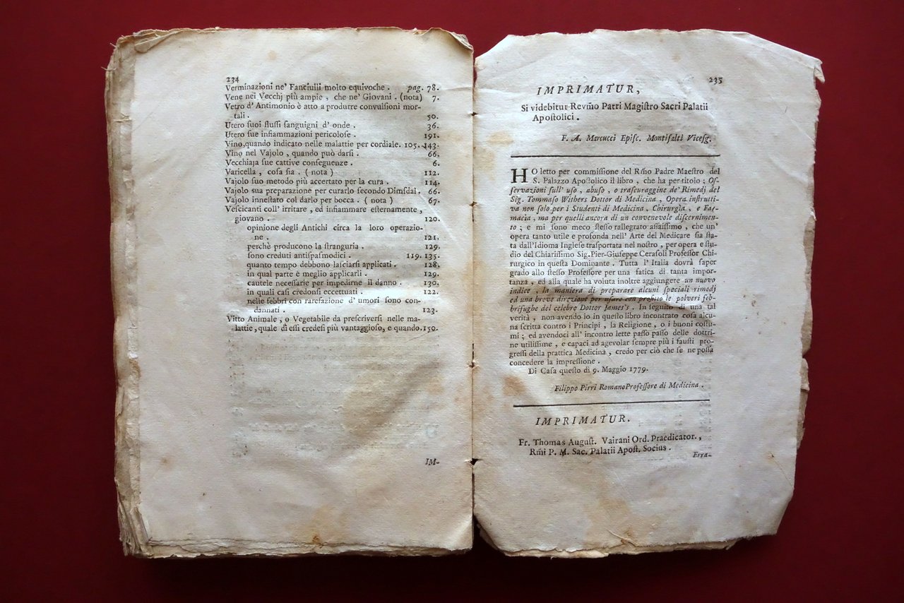 Osservazioni sull'Uso Abuso Trascuraggine de'Rimedi Withers Francesi Roma 1779