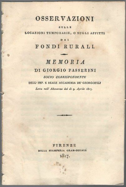 Osservazioni sulle locazioni temporarie, o sugli affitti dei fondi rurali.