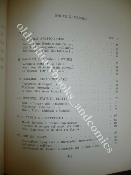 DESCRIZIONE: Ceschina Milano 1970, br. ed. con sovracc. ill. col. con alette, pp. 318 con 8 tavv. col. e 6 in b/n f.t. Bibliografia e indice dei nomi delle osterie, osti, ostesse, hostarie, fraschette, bettole, ecc. CONDIZIONI: Ottime. PESO / WEIGHT: 800 gr. without package