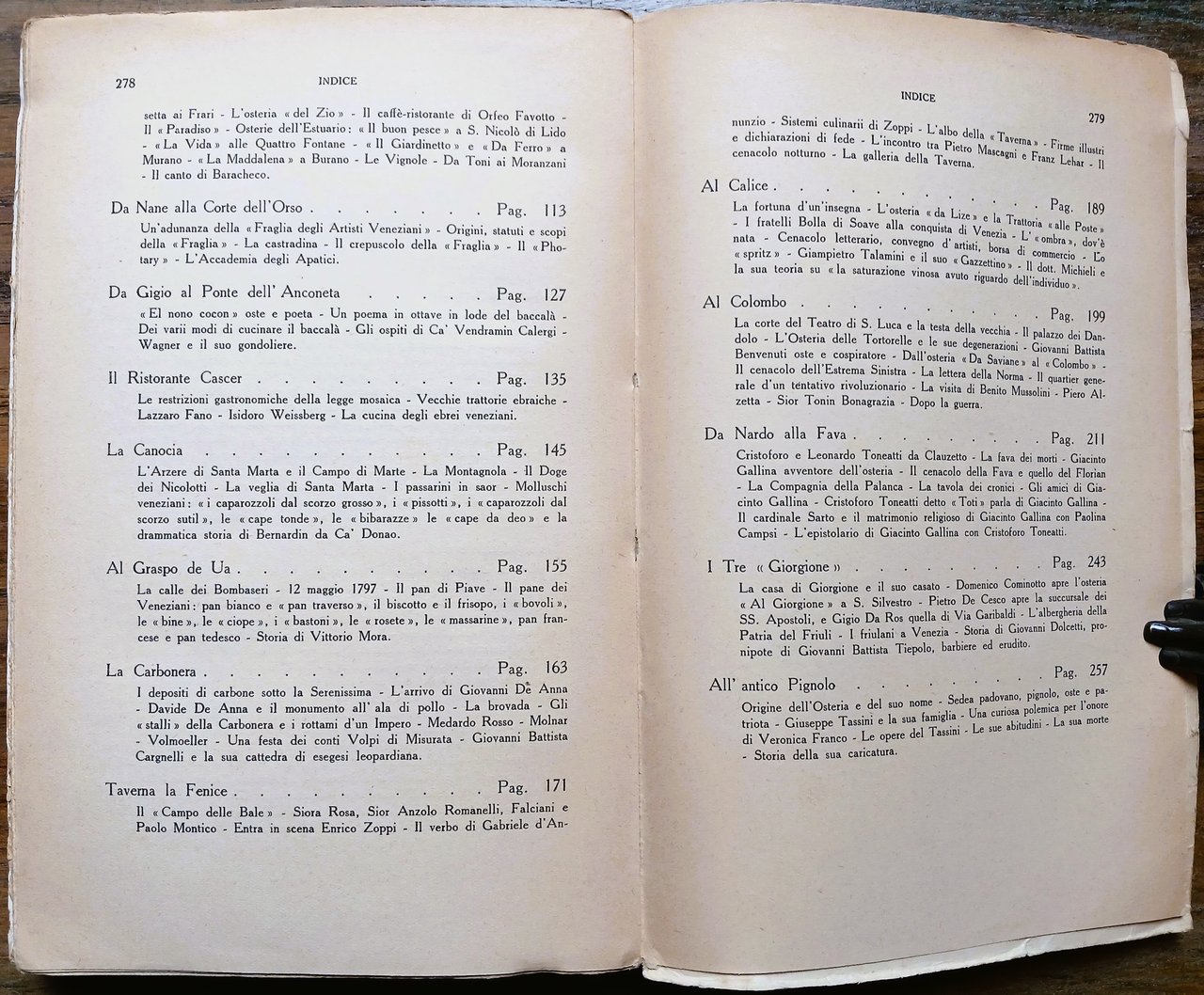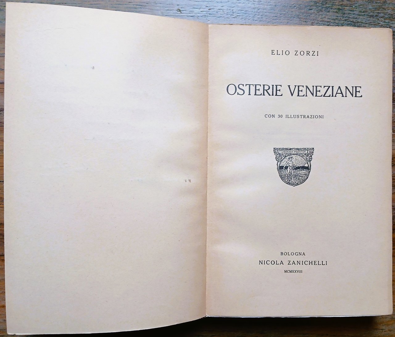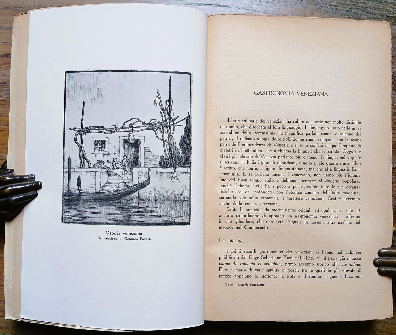 (Ristorazione storica a Venezia - Gastronomia veneziana - Locali) In 8°, brossura editoriale a fondo avorio con titoli in verde ed illustrazione xilografica di Bruno Bramanti in prima di copertina, pp. (4),279,(1), con 30 illustrazioni su tavole fuori testo. Dedica autografa di Elio Zorzi al recto del foglio di guardia anteriore. Edizione originale. Ottimo stato di conservazione.