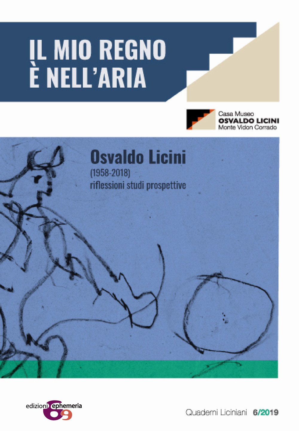 Nel sessantennale della scomparsa dell’artista avvenuta l’11 ottobre 1958, il Centro Studi Osvaldo Licini in collaborazione con il Comune di Monte Vidon Corrado ha organizzato il convegno "Il mio regno è nell’aria. Osvaldo Licini (1958-2018): riflessioni, studi, prospettive", con la necessità di fare il punto della situazione sullo stato degli studi sull’artista. Il titolo è una citazione da una lettera inviata a Marchiori, datata 1935, in cui Licini scrive di aver inviato alla Quadriennale tre quadri irrazionali “dipinti a 500.000 metri d’altezza, nella zona siderale”, una dimensione stratosferica dalla quale non è più tornato a terra. Questa raccolta di saggi, cronologicamente collocati, è la chiave necessaria per entrare nel mistero creativo di Osvaldo Licini, un pittore, ironico, poetico, un intellettuale aggiornato, acuto, al passo coi tempi.