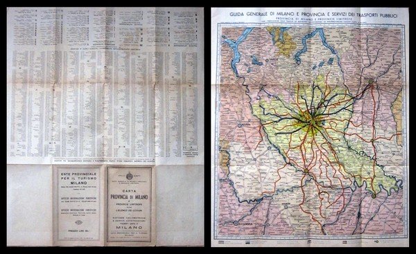In 16°, pieghevole di 24 facciate con la cartina di Milano e provincie limitrofe; buon es.