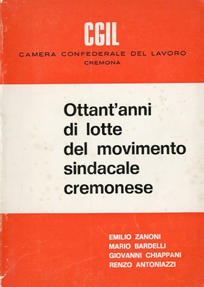 157 p. : ill. ; 24 x 17 cm. Contributi di: Emilio Zanoni, Mario Bardelli, Giovanni Chiappini, Renzo Antoniazzi. In testa alla cop.: CGIL Camera confederale del lavoro, Cremona. Brossura editoriale, coperta in cartoncino flessibile plastificato opaco. All'interno numerose fotografie in b/n. Qualche segno del tempo ai profili della coperta, interno in buono stato. Codice libreria 2031.