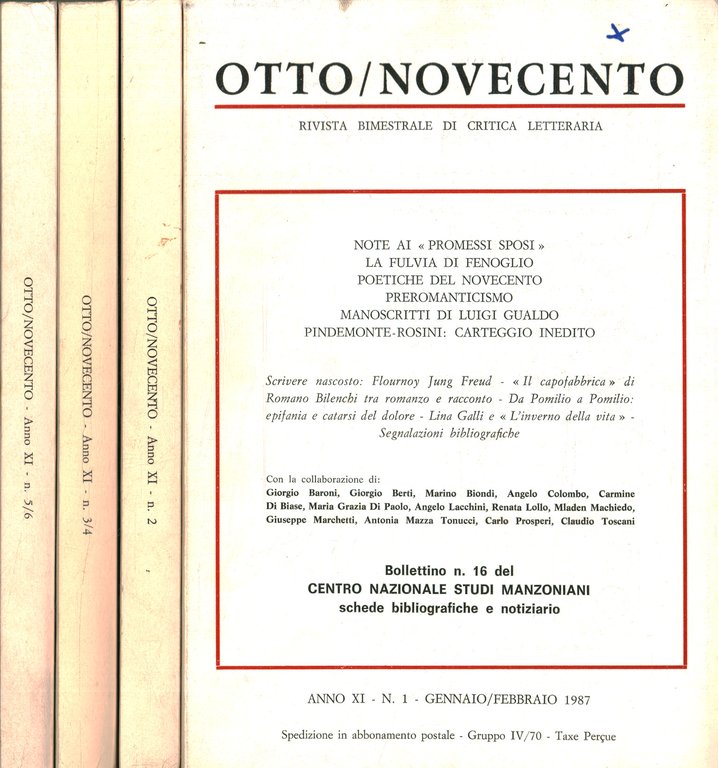 Otto/Novecento: rivista bimestrale di critica letteraria. Annata completa 1987 Anno XI n.1,2,3/4,5/6 (4 Volumi)