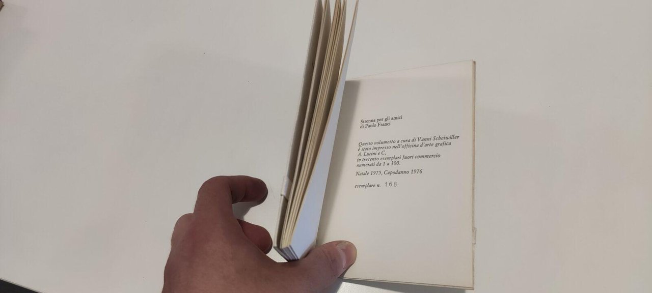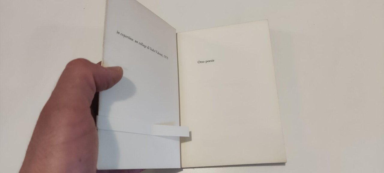Eugenio Montale - Otto poesie Strenna per gli amici di Paolo Franci In copertina un collage di I. Valenti Scheiwiller - Prima edizione 1975 300 copie numerate, questa la 168 Libro in ottime condizioni, minimi segni del tempo: tracce di polvere e un leggero ingiallimento ai piatti e al dorso. Non esitate a contattarci per altre foto o richieste. Saremo lieti di soddisfare ogni vostra esigenza.