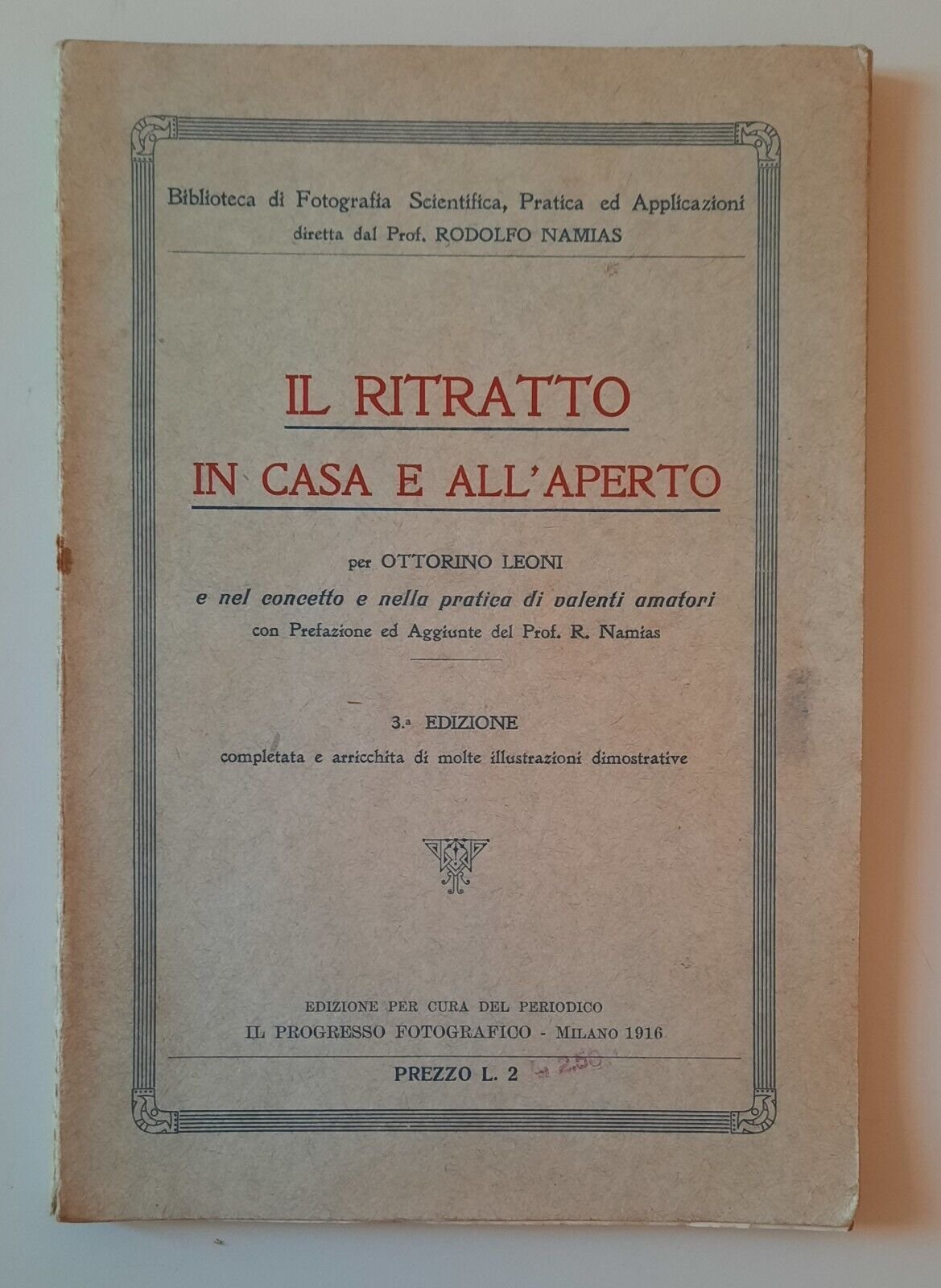 OTTORINO LEONI IL RITRATTO IN CASA E ALL'APERTO IL PROGRESSO FOTOGRAFICO 1916In 8°, pag. 123, legatura editoriale, copertina illustrata, ill. in b/n.In ottime condizioni.Ulteriori dettagli e immagini a richiesta.
