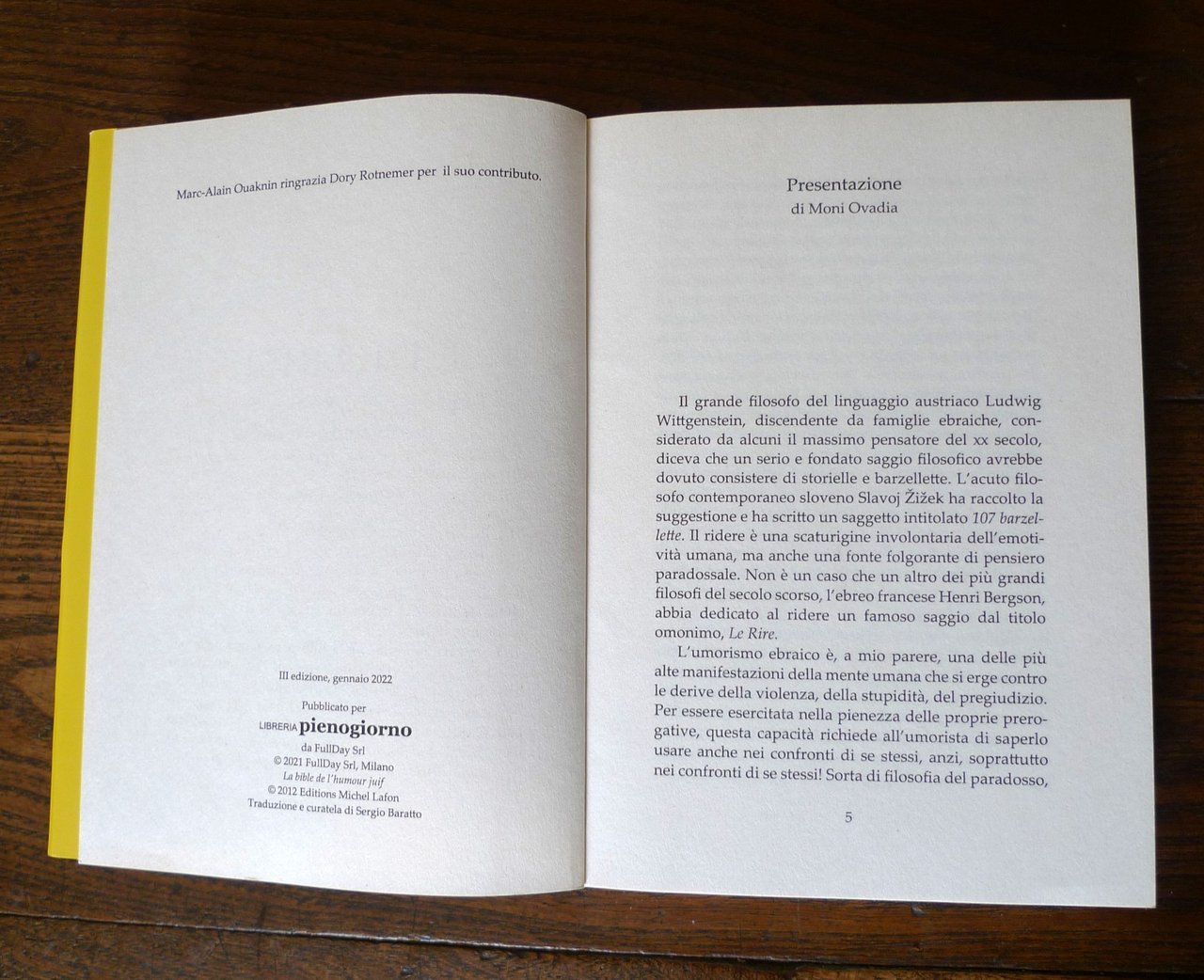 Marc-Alain Ouakninpresentato da Moni Ovadia,E DIO RISE.La Bibbia dell'umorismo ebraicoda Abramo a Woody.Libreria Pienogiorno / FullDay, Milano 2022,III edizione: gennaio 2022,brossura, 21x15 cm., pp.300,ISBN: 979-12-8022-915-1,peso: g.500cod.9510CONDIZIONI DEL LIBRO: come nuovo