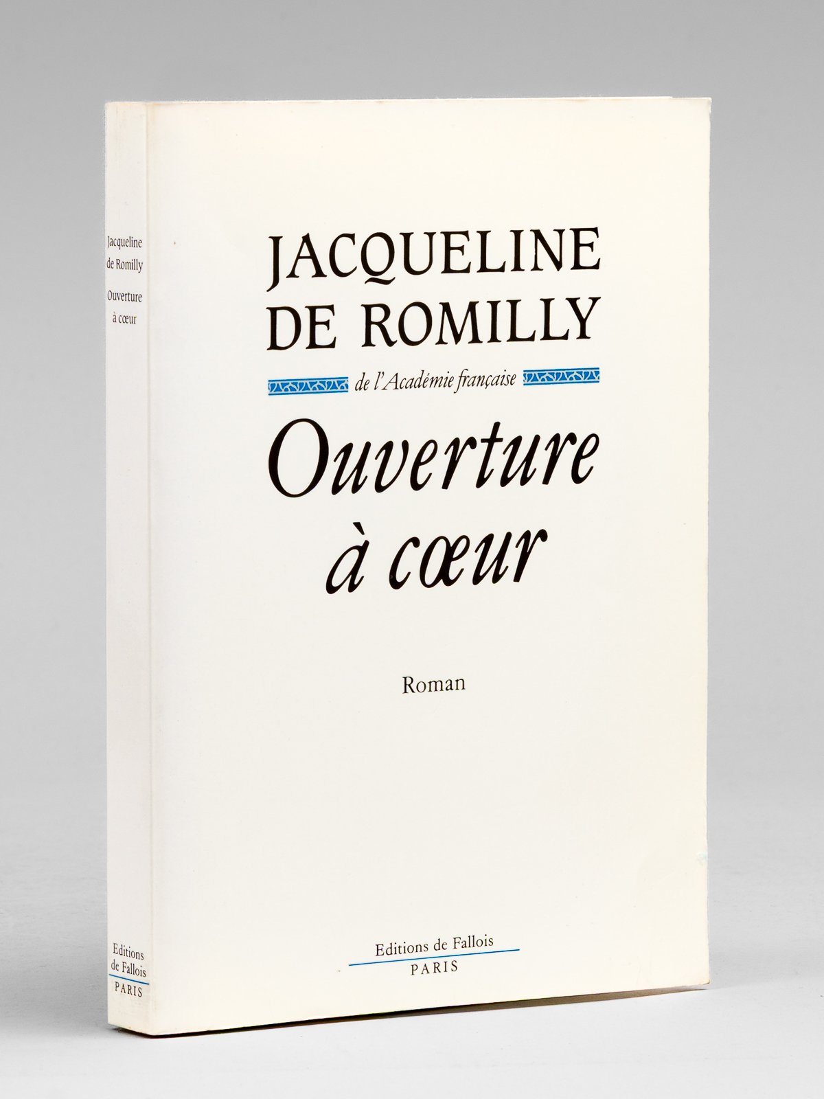 Envoi ms. de l'auteur, 1 vol. in-8 br., Editions de Fallois, Paris, 1990, 290 pp. Bel envoi de l'auteur à l'académicien Maurice Druon et à son épouse : "Pour Maurice Druon et pour Madeleine Druon, en espérant que ce livre (très sentimental) ne ridiculisera pas tout à fait une personne à qui l'Académie avait fait confiance. et en les assurant de ma fidèle gratitude." Maurice Druon (1918-2009), auteur notamment de la célèbre saga historique des Rois maudits, fut élu à l'Académie Française en 1968. Il en devint le Secrétaire Perpétuel, de 1985 à 1999. Jacqueline de Romilly, quant à elle, fut élue à l'Académie Française en 1988. Etat très satisfaisant (rouss. sur tr. sup., bon état par ailleurs) pour cet exemplaire, d'une origine prestigieuse.