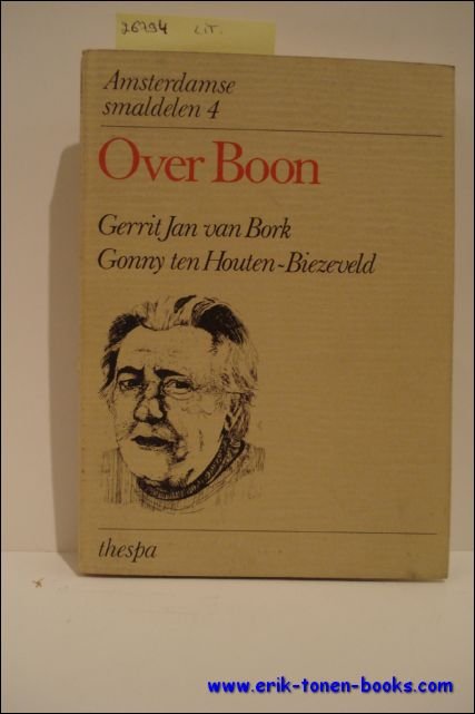 Originele papieren uitgeversomslag met flappen, 12x16.8 cm., 208 pp. ISBN 9061850614. Amsterdamse Smaldelen 4. In "Over Boon" wordt een chronologisch overzicht - lopend tot en met 1972 - van publikaties over de auteur Louis Paul Boon geschreven. Daarnaast is getracht uit het materiaal een beeld te schetsen van de literaire kritiek op Boon.