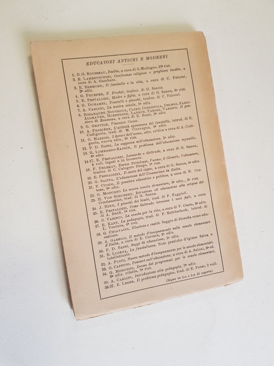 Collana: Educatori Antichi e Moderni, CXIX. Prima edizione.<BR>In 16° grande; pp. 166 con alcune tavole in nero fuori testo; brossura editoriale; cucito.<BR>CONDIZIONI MOLTO BUONE (lievi mende al dorso).