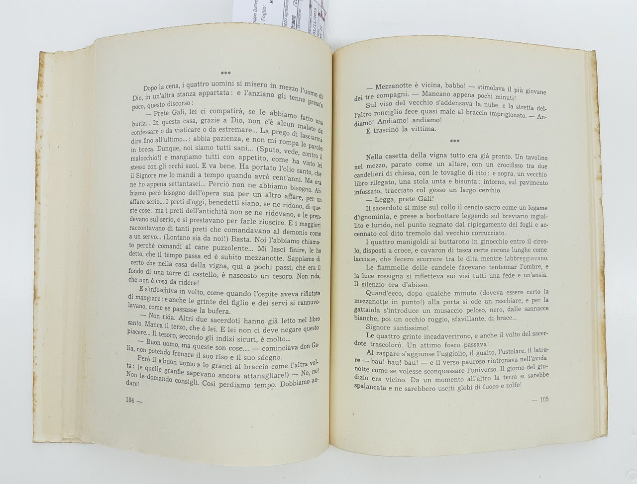 legatura morbida editoriale in condizioni accettabili con aloni e sporcizie ai piatti e al dorso, margine esterno dei piatti con piccole pieghe, tagli irregolari bruniti con fioriture quelli superiori, alla prima pagina bianca timbro del vecchio proprietario, interno in discreto stato lievissima brunitura al margine esterno delle pagine, fioriture alle prime ed ultime pagine, numero pagine 156 + indice dimensioni cm 22,1 * 16