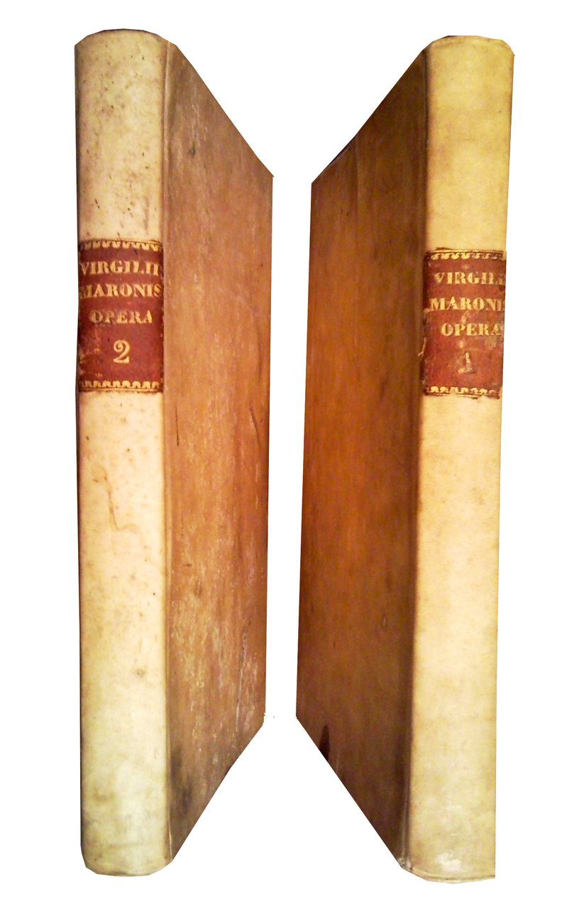 in-4° (256x188 mm); leg. rigida in piena pergamena originale, con dorsi lisci e titolo in oro su tasselli in cuoio ai dorsi; 2 vol.; pp. XVI, 341, [2]; [2], 347-700; frontespizi in b/n, con belle marche tipografiche. Seconda edizione, interamente in latino, di questo famoso classico a cura di Virgilio; il nome del tipografo, Antonio Graziosi, si ricava dalla licenza di stampa alla c.2V4v; testi originali, in latino, versione in prosa con ampie note; il primo vol. comprende i cenni biografici, le Bucoliche, le Georgiche e l'Eneide (libri 1-5); il secondo vol. comprende l'Eneide (libri 6-12) e da pag. 639 l'indice di tutti i vocaboli presenti in Opere di Virgilio; le note dell'opera sono a cura di Charles de La Rue (1643-1725), gesuita, scrittore di tragedie ed oratore. Publio Virgilio Marone, in latino Publius Vergilius Maro (70 a.C.–19 a.C.), fu un poeta romano. Rif.: IT\ICCU\BVEE\056987. OCLC, 43359571. Cond.: La pergamena della legatura è leggermente tirata (il libro tende ad aprirsi al taglio laterale); opera completa, in ottime condizioni generali. -- SECOND EDITION, ENTIRELY IN LATIN, OF THIS FAMOUS CLASSIC BY VIRGIL. The parchment of the binding is slightly stretched (the book tends to open up at the fore edge). Complete work, in very good condition.