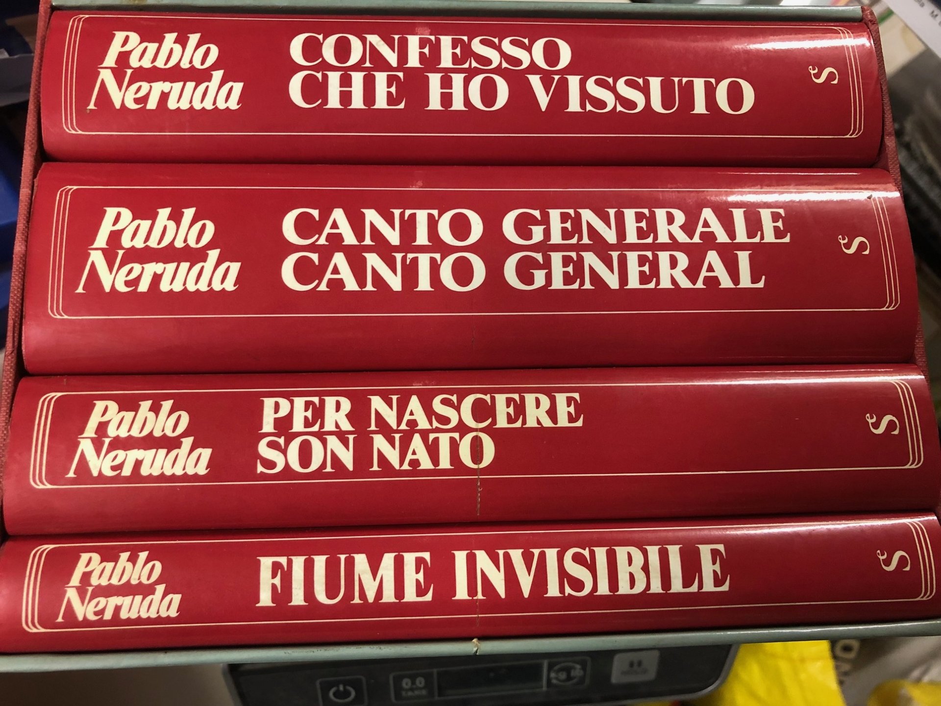 IN 4 VOLUMI :CONFESSO CHE VISSUTO, CANTO GENERALE ,PER NASCERE SON NATO, FIUME INVISIBILE CON COFANETTO INTEGRALE CLASSICI RILEGATI
