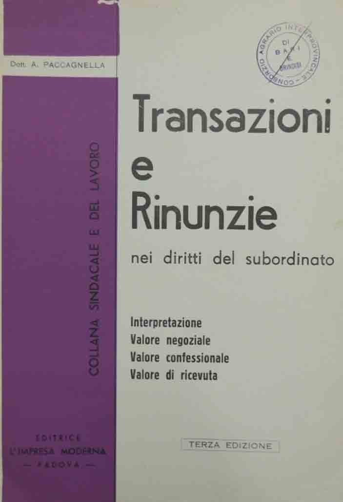 Paccagnella, Transazioni e rinunzie nei diritti del subordinato