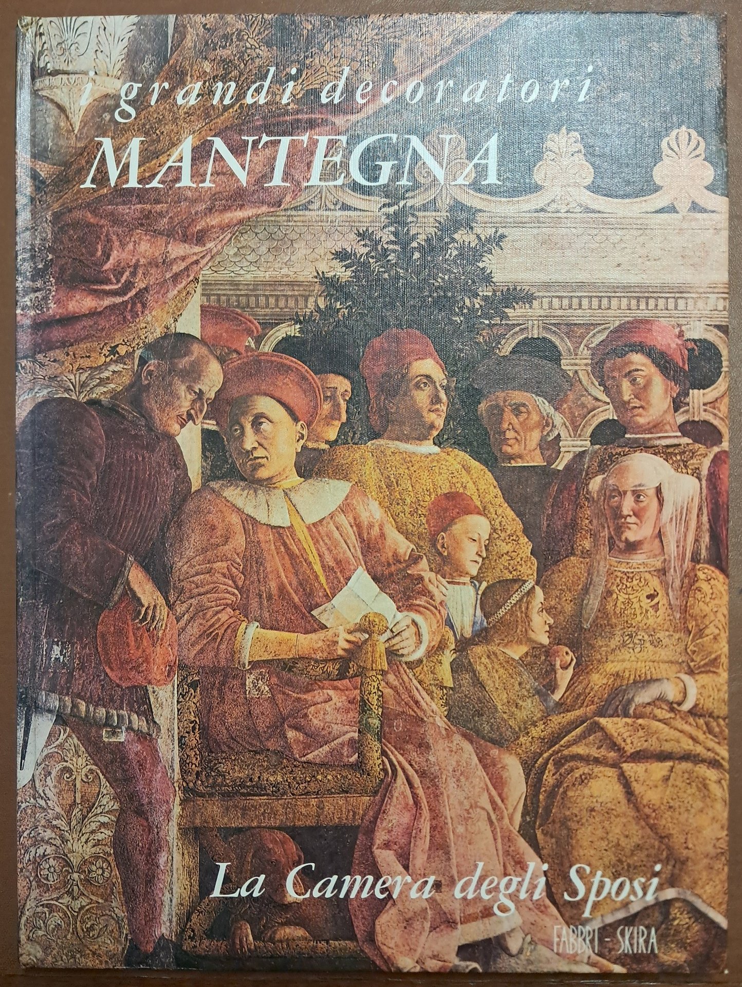 Mantegna. La camera degli sposi, testo di Giovanni Paccagnini, Fratelli Fabbri – Albert Skira, Milano 1968, pp. 72 ill. b.n., 54 c. di tavv. nel testo ill. col. di cui 1 ripiegata, cm 36, cart. ed. con titoli al dorso e titoli e ill. col. al piatto. Collana I grandi decoratori, 3. Il volume si compone di 16 pp. di testo ill. b.n. e di 54 cc. di tavv. ill. col. di cui una ripiegata. Leggere tracce d’uso, per il resto ben conservato.