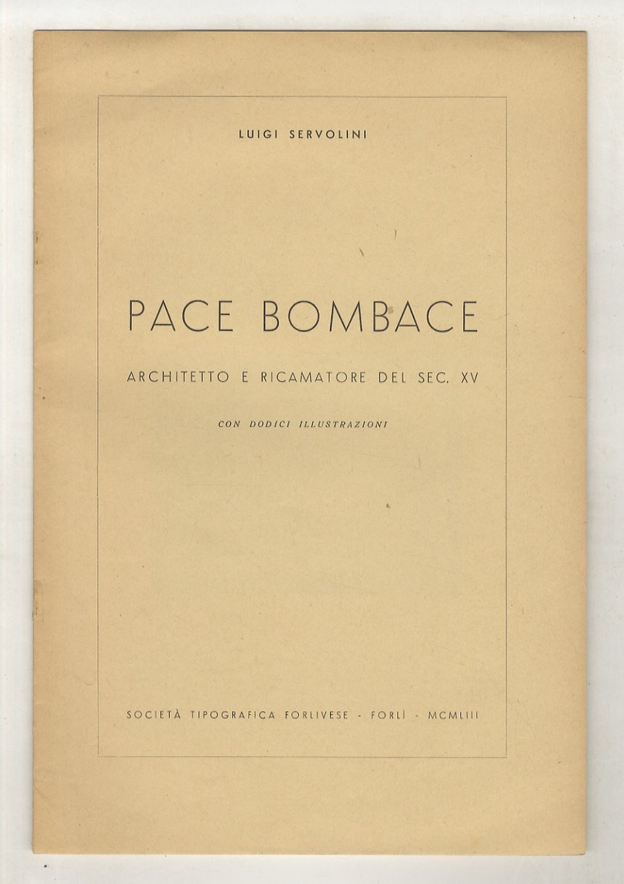Forlì, Soc. Tip. Forlivese, 1953, in-4, br., pp. 9. Con 12 illustrazioni in b.n. nel t. e nota bibliografica. Edizione in 80 esemplari numerati (N. 2). Estratto.