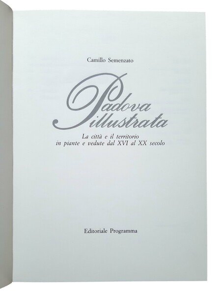 Un volume, 335x245 mm, leg. editoriale in tela marrone con titoli dorati, sovracoperta in carta con illustrazioni e titoli; vedute di Padova alle guardie; pp. 208. Numerose illustrazioni in b/n e a colori. Rif.: IT\ICCU\VIA\0006324. OCLC, 256337093. Cond.: Ottimo esemplare.