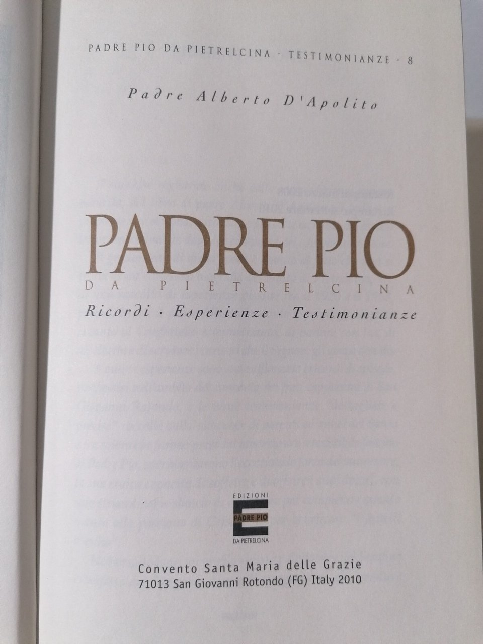 Padre Pio Da Pietrelcina Ricordi Esperienze Testimonianze Libro D'Apolito 2010