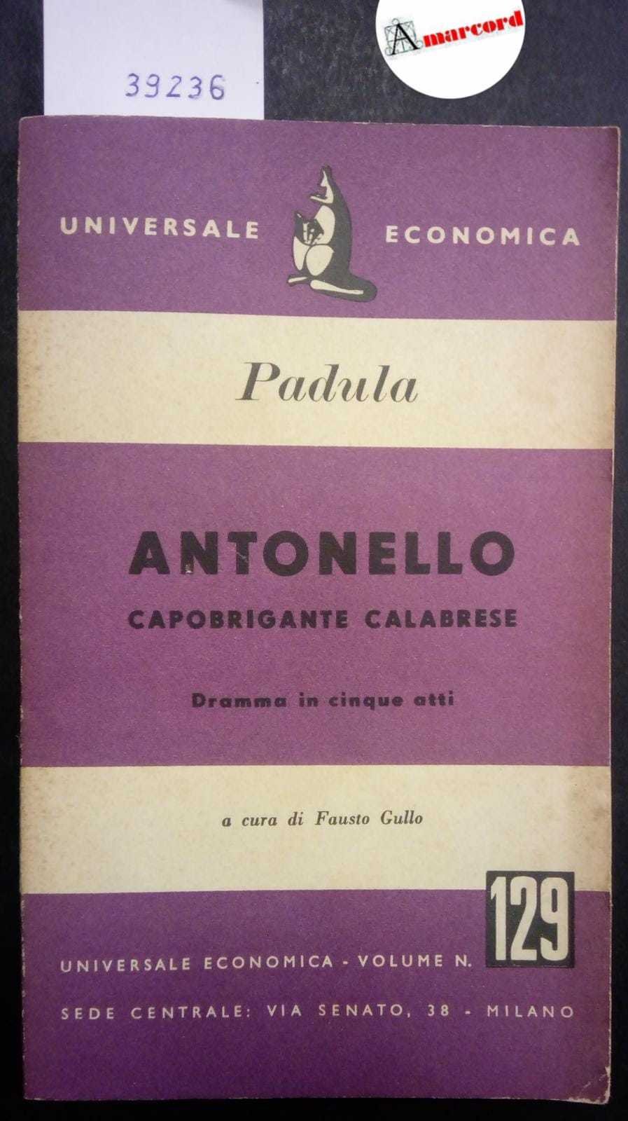 Padula Vincenzo Padula Vincenzo, Antonello capobrigante calabrese, Universale Economica, 1952. Milano, Universale Economica 1952 italiano, in sedicesimo 122 39236
