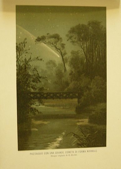 Paesaggio con una grande cometa di forma normale. Tratto da "L'universo stellato. Trattato di astronomia popolare" del dott. M. Guglielmo Meyer.