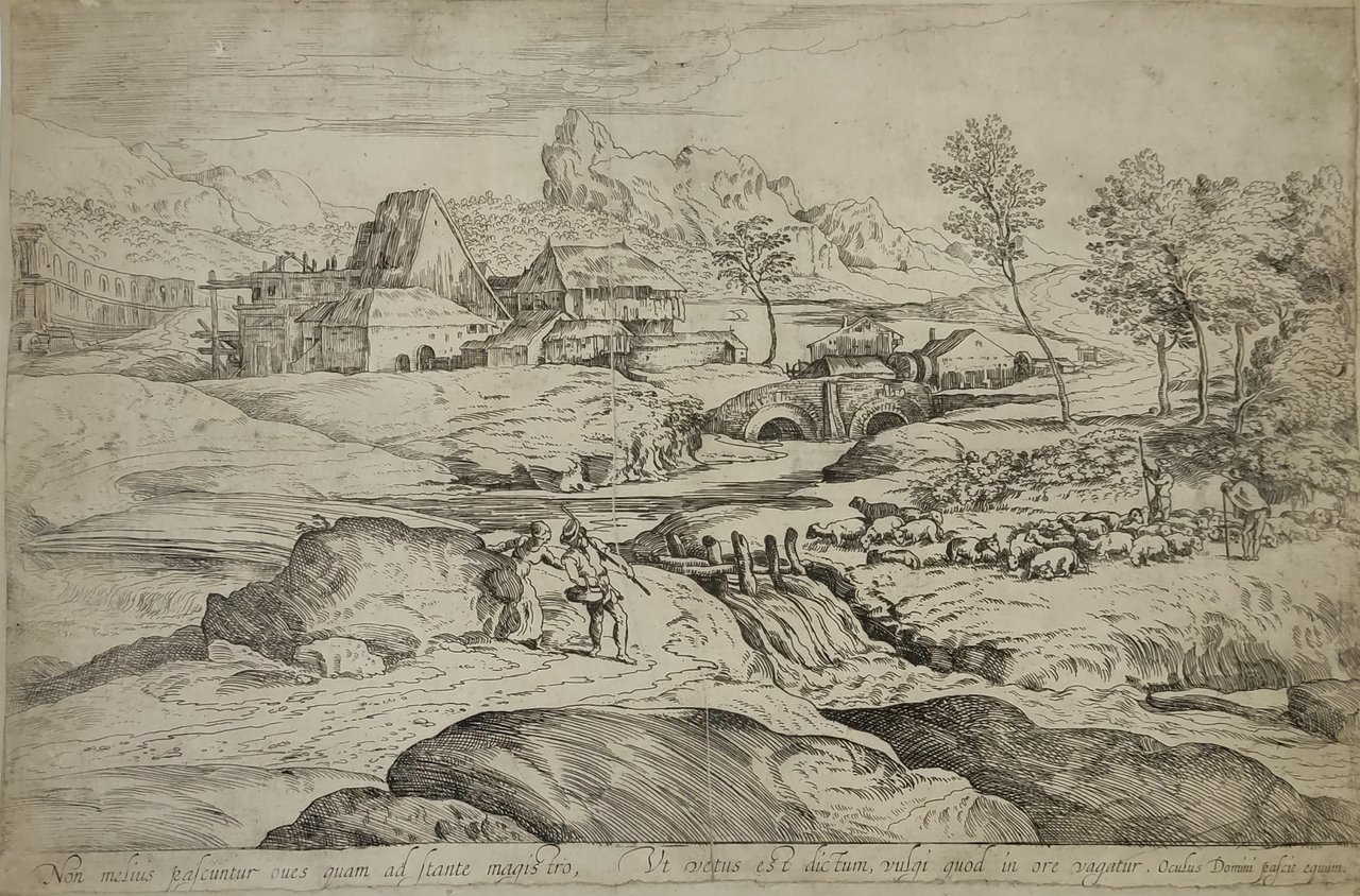 acquaforte cm. 38 x 25 Buono (Good) Buon es., pieghe al centro, filomargine.