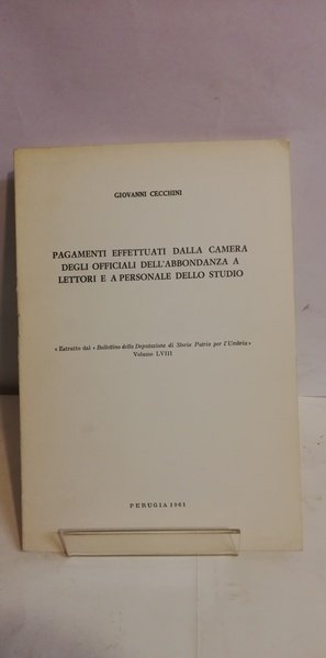 A LETTORI E A PERSONALE DELLO STUDIO. Estratto dal Bollettino della Deputazione di Storia Patria per l’Umbria, Volume LVIII, Perugia 1961.