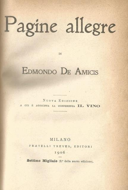 Fratelli Treves Editori, Milano, 1906. Settimo migliaio (2° della nuova edizione). Nuova edizione a cui è aggiunta la Conferenza “Il Vino”. In 8vo, pp. 28, 440 + 7 di pubblicità editoriale. Usuali segni al dorso e un po' di uniforme ingiallimento delle pagine, elegante la legatura, buon esemplare.