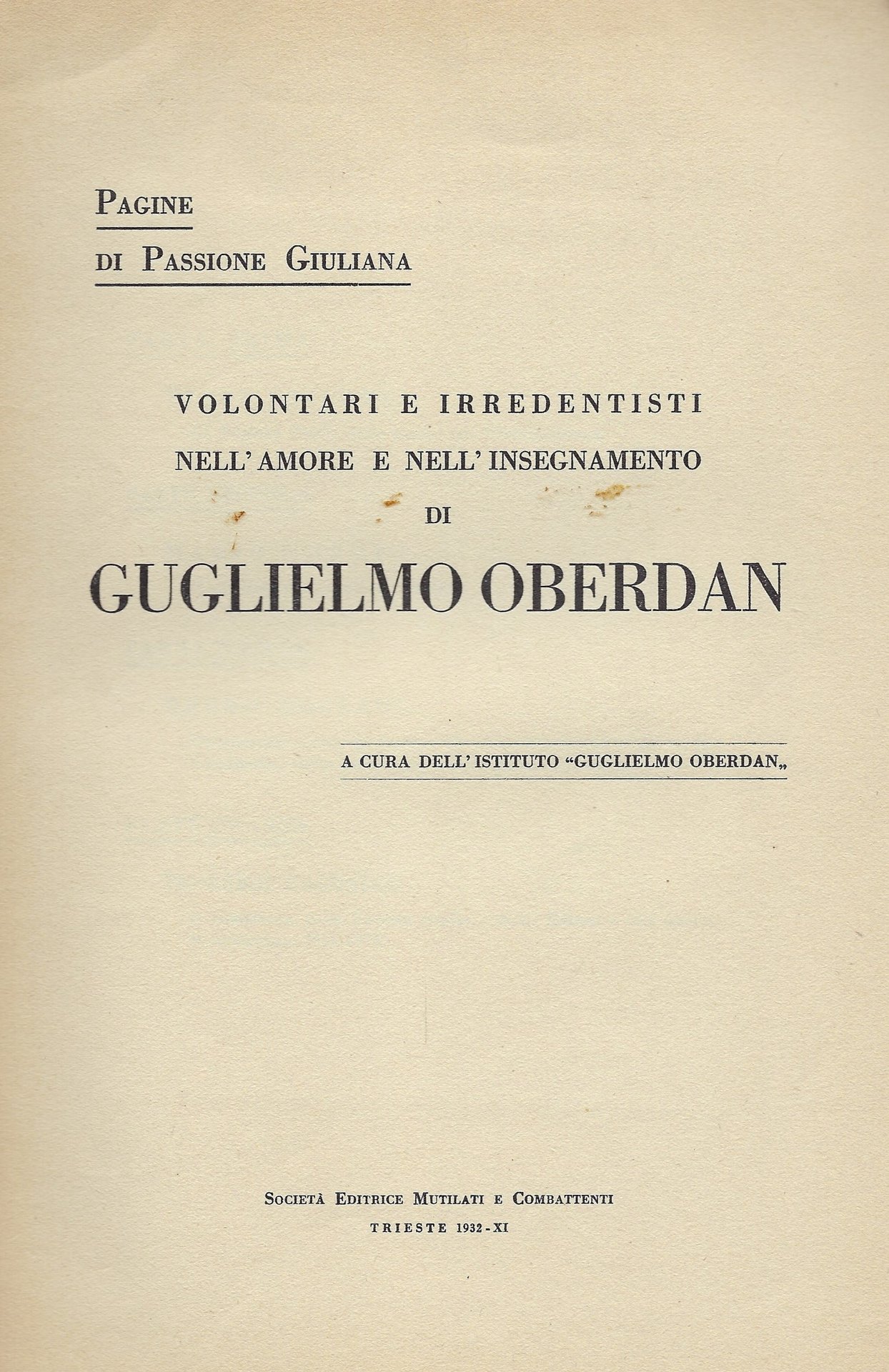 Pagine di Passione Giuliana - Volontari e irredentisti nell'amore e nell' insegnamento di Guglielmo Oberdan