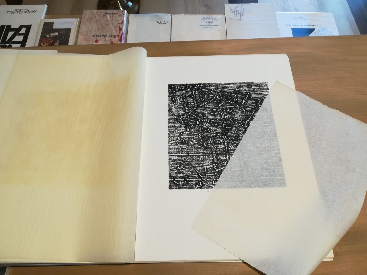 Franca Ghitti - Pagine di pietra - Valcamonica - Prima edizione 1982 Cartella con sei incisioni tirate sui torchi a mano di Giancarlo Sardella. Stampato in 114 esemplari, questo una prova d'artista dedicata dall'autrice a Giovanni Pugliese Carratelli, autore del primo dei due saggi presenti nella cartella, il secondo и di Elda Fezzi. Ottimo stato di conservazione. Non esitate a contattarci per altre foto o richieste. Saremo lieti di soddisfare ogni vostra esigenza.