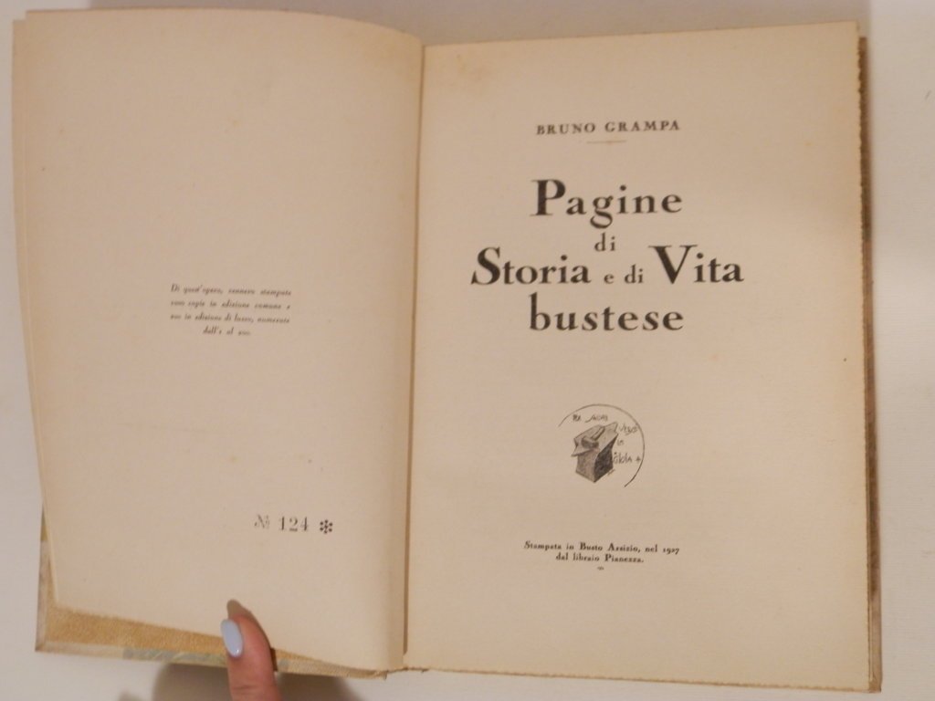 8°, cm 21, pp. 259, [14] c. di tav ; mezza pergamea con piatti marmorizzati. Tassello al dorso. Timbro di appartenenza di collezione privata alla prima carta bianca. Importante opera di storia bustese. Nessuna sottolineatura, ottimo esemplare. Bruno Gramba (Busto Arsizio 1904- 1979) medico, Libero Docente in Ostetricia e Ginecologia, sin da giovane appassionato studioso della storia delle tradizioni e del dialetto di Busto. Dal 1925 sino al 1979 diede vita a numerose pubblicazioni, inoltre collaborò a periodici e riviste locali, come “Il Tempio”, “La Rivista Bustese”, “La Prealpina” e “L'Almanacco” della Famiglia Bustocca. Fu fondatore e I° Presidente del Lions Club Busto Arsizio Host. Socio dell'Accademia Italiana della Cucina, fondò il “Magistero dei Bruscitti”, con lo pseudonimo Anteo. Ufficiale medico durante l'ultima guerra, perseguitato politico, subì il carcere come antifascista. Dopo il 1945 fu Segretario della Sezione Socialista di Busto, Direttore de “Il lavoro socialista” e rifondatore di “La critica sociale”. Fu, inoltre, fondatore e Segretario per molti anni del Sindacato dei Medici della Provincia di Varese. Oltre ad esserne stato Socio fondatore, per la Famiglia Bustocca ricoprì anche la carica di Regiù negli anni 1964-65.. *** TUTTI I NOSTRI LIBRI SONO VISIBILI PREVIO CONTATTO MAIL O TELEFONO NELLA NUOVA SEDE DI MILANO: LIBRERIA COSMOPOLIS, VIA JOMMELLI, 22. ***