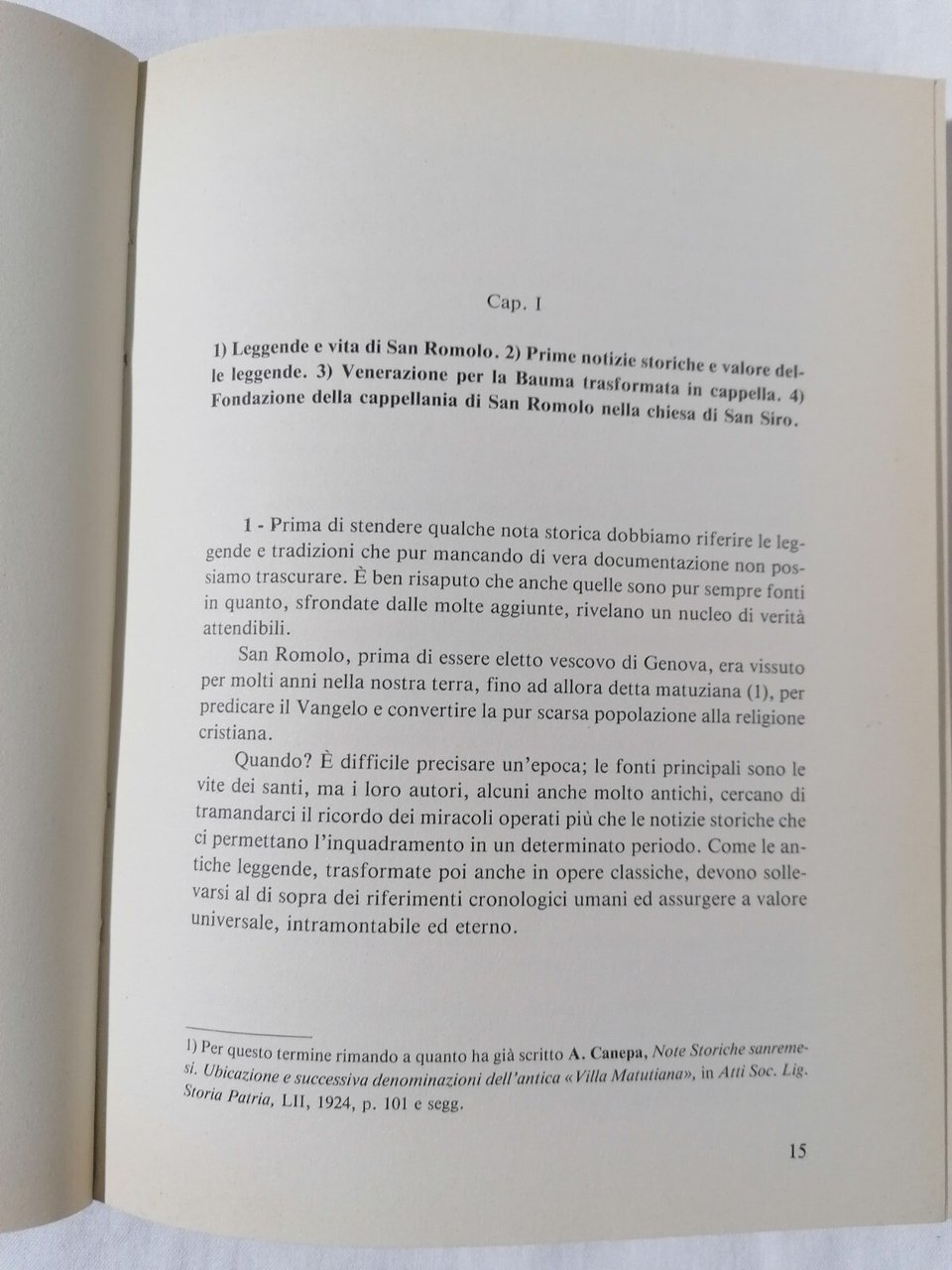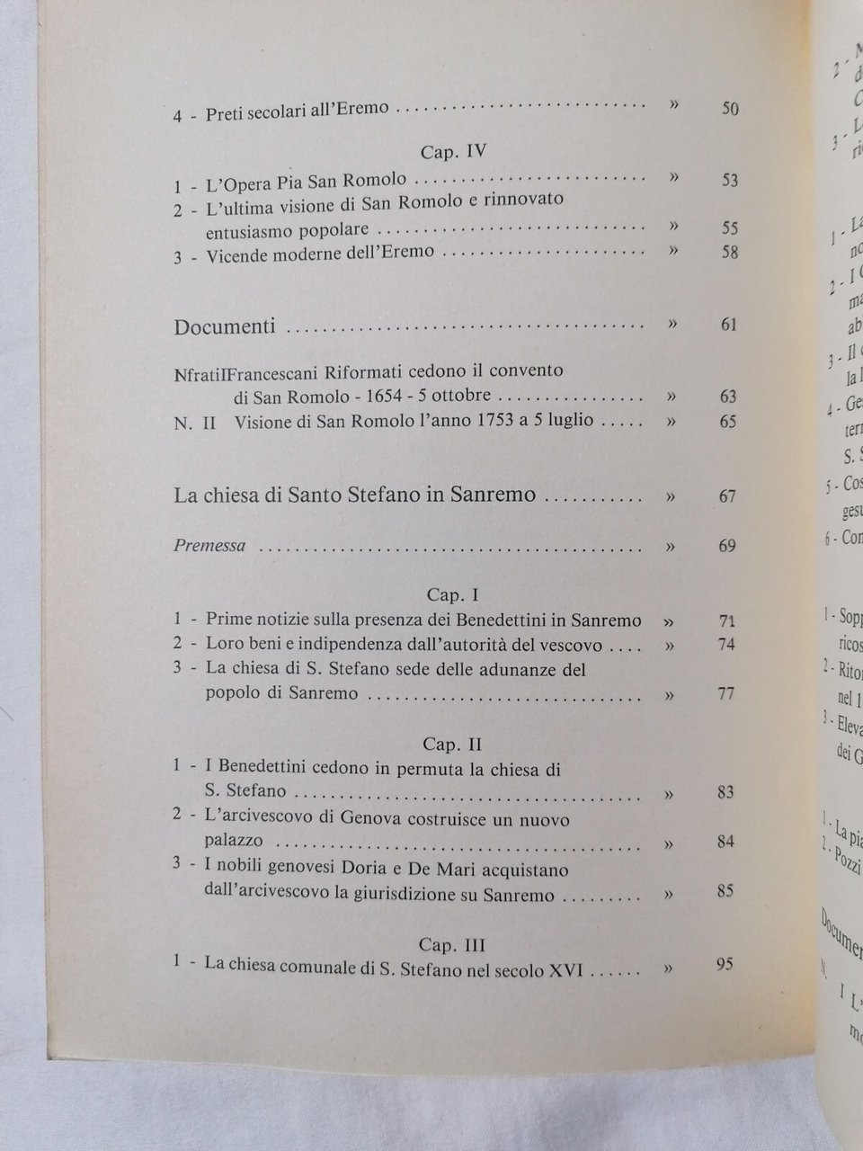 Edizioni Casabianca a cura della Famija Sanremasca La Bauma e il Convento di San Romolo, La Chiesa di S. Stefano in Sanremo; Libri pro e contro Sanremo nel secolo XVIII Brossura, 200 pagine. Edizione del 1978 Condizioni: buone