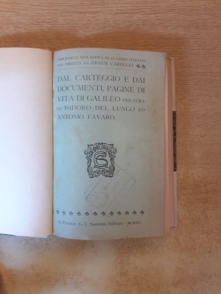 Pagine di vita di Galileo dal carteggio e dai documenti per cura di Isidoro Del Lungo ed Antonio Favaro
