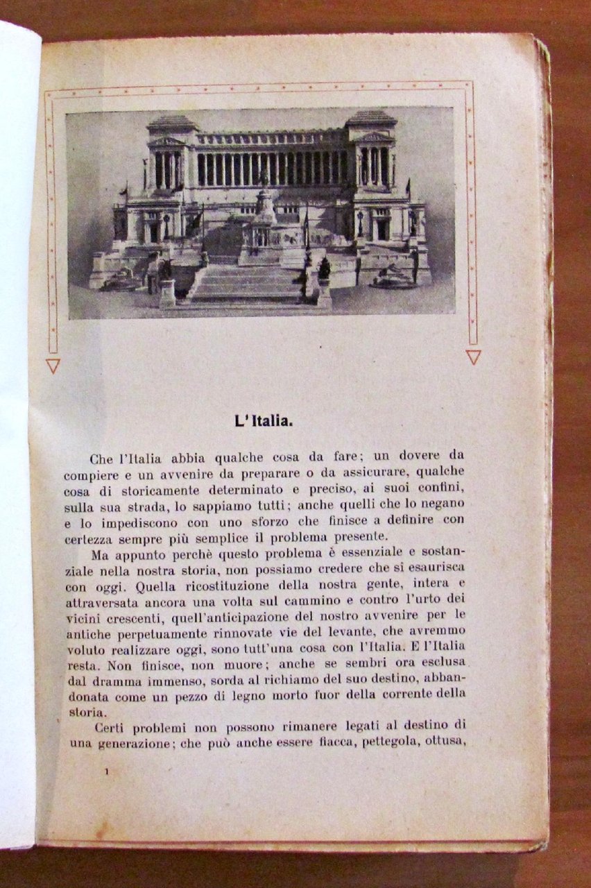 Antologia moderna ad uso delle scuole medie. Con 34 illustrazioni n.t e 13 f.t. tutte in b/n. Eredi Botta Editore - Torino, I edizione 1923. Brossura editoriale con qualche segno del tempo alle copertine. Interno in ottimo stato. 14x21,5; pp.470. BUONISSIMO STATO , Molto buono (Very Good)