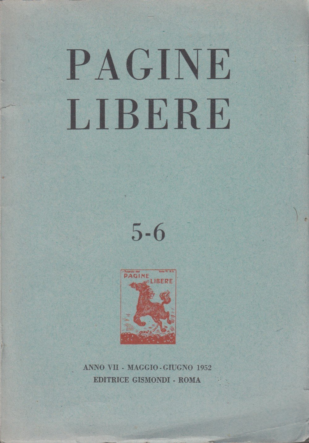 Pagine Libero 5-6 Anno VII Maggio-Giugno 1952. Edizioni Gismondi